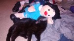 She was only two bucks, and the cats are obsessed with her for some reason, so I included a photo of Murdoc in her dress.