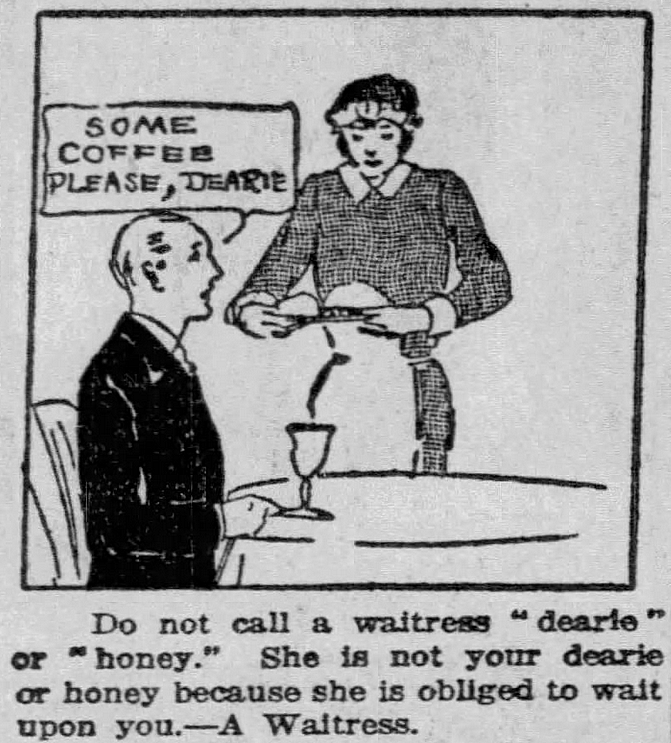 men: oh all of a SUDDEN you can’t call a waitress “sweetheart” or “dear” what is this NEW feminist bullshit
