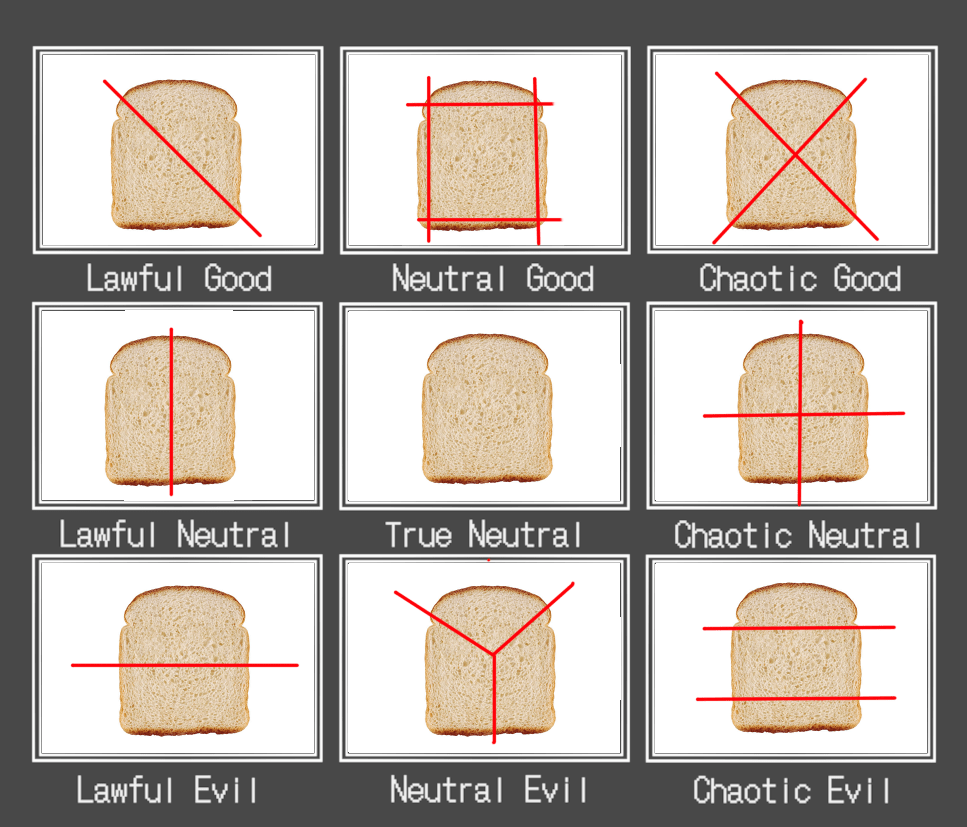 My brother and I were making sandwiches and we decided on an alignment chart for how sandwiches are cut.