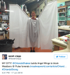 There’s a reason this was undertaken by a theatre company. It means they knew The Laramie Project. It means they knew that the idea for the angel wings came from their use to block the WBC at the funeral of Matthew Shepard, a gay college student who was murdered in Wyoming in 1998.